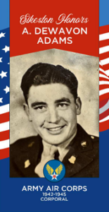 A. Dewavon Adams served in the Army Air Corps. from 1942-1945. He achieved the rank of Corporal.