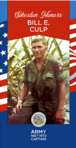 Bill Culp was drafted into the United States Army January 5, 1967. He served from 1967-1972 and was assigned to Fort Campbell, KY for basic training. After basic he was sent to Fort Sill, OK for advanced individual training. He would be selected to go to Artillery Officer Candidate School at Fort Sill. Upon completion of OCS, he was promoted to 2nd Lieutenant. In 1968 he and sent to Vietnam and assigned to A Company 1/505 82nd Airborne Infantry as a Forward Observer. He finished his tour as an executive officer with the 2/231, 105mm artillery battery. After Germany, he was once again sent to Vietnam and served with the 1st Air Cavalry as 2/5 battalion Air Observer and finished his tour as A 1/21, 105mm battery commander. His honors include the Bronze Star, Army Commendation Medal, Air Medal, Vietnam Gallantry Cross with Palm, Vietnam Service, Vietnam Campaign and Valorous Unit Citation. After his tour he was sent to Fort Sill where he served until his release from active duty on April 10, 1972. Bill is a member of the VFW Post 3174 and the American Legion Post 114. He retired from the Sikeston Board of Municipal Utilities.
