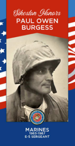 Paul Owen Burgess served in the United States Marine Corps from 1963-1967. He would complete one-tour in Vietnam. Paul achieved the rank of Sergeant E-5.