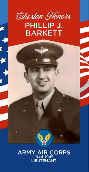 Lieutenant Phillip J. Barkett served in the United States Army Air Corps from 1944 to 1945. During his service his plane was shot down over Germany. He was a prisoner of war for 11 months.