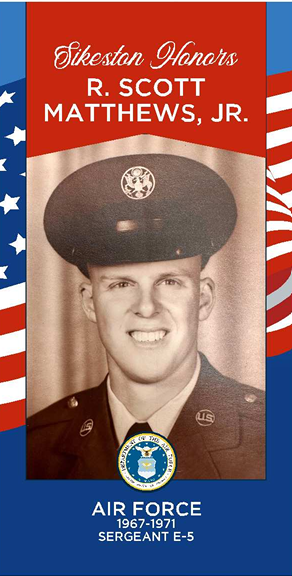 Robert Scott Matthews, Jr. served in the United States Air Force from 1967-1971. He achieved the rank of Sergeant E-5. Scott completed Basic Training at Lackland Air Force Base in Texas. He served at Travis Air Force Base in California from 1967-1971, and at the RAF Lakenheath Air Force Base in the United Kingdom from 1969-1971. He was awarded the Air Force Commendation Medal for his service.