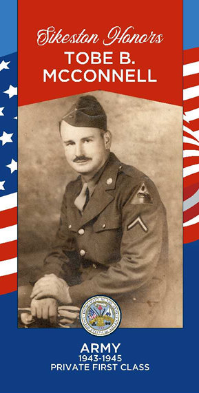 Tobe B. McConnell served int he United States Army from 1943-1945. His rank was Private First Class.